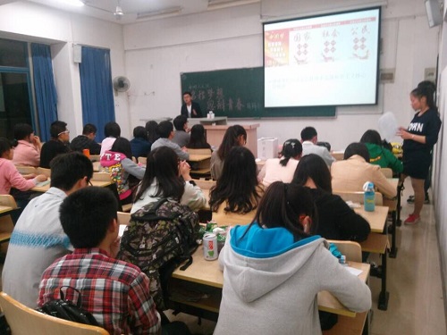 3月下旬,校团委组织开展社会主义核心价值观教育活动,公司各团支部纷纷响应开展了各种形式的主题团日活动。本次研讨会以主题团日活动成果宣讲为内容,采用PPT演示、视频、报告、故事、小品、相声等形式,展示各班对主题团日活动的开展成果。宣讲现场气氛活跃,各班代表做足了前期准备,利用生动精彩的视频和事例,大胆地发表自己的见解。大一3班利用小品形式重现班会现场场景,真实有趣,令人印象格外深刻,现场不时爆发出热烈的掌声。10班情感丰富,积极落实,真正将社会主义核心价值观的大概念化为一点一滴的行动。大二6班以歌曲、视频方式与在场同学充分互动,力求人人参与到活动中,一段“一生十载,三尺扫把”的环卫工老爷爷的坚守岗位的视频,让我们深刻感受到“爱岗敬业”的崇高品格。时间流逝,现场热情却丝毫不减,场内观众也被带动,针对代表的发言积极提问。