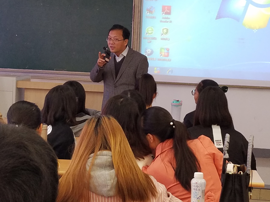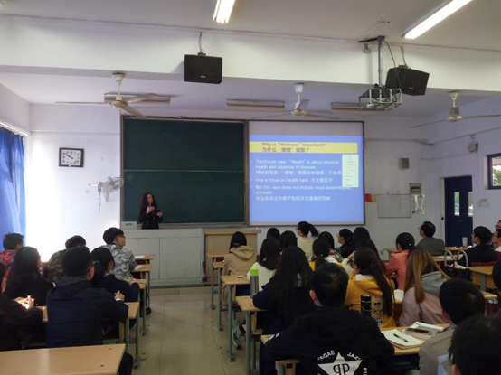 讲座开设前,丁静书记专程前往教室对LindaNeuhauser和李文晶教授表示欢迎和感谢!