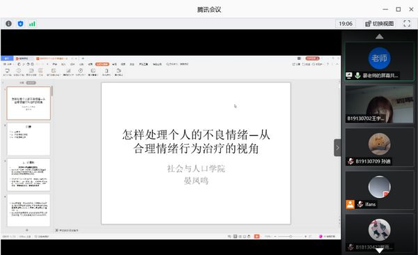 6月18日晚,公司关工委面向公司青年学子开展了主题为“怎样处理个人的不良情绪——从合理情绪行为治疗的视角” 的讲座,本次讲座由公司关工委副主任晏凤鸣副教授主讲。