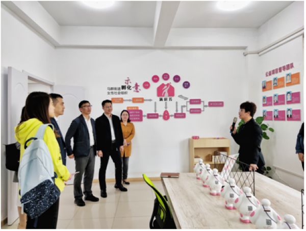 与会领导首先参观了马群街道妇女儿童之家的建设成果。残疾人之家、亲子绘本馆、家长公司、女性社会组织孵化室等充分展现了马群街道妇联“1+6+N”的全域化服务创新模式。随后,张强书记与马群街道党工委副书记、办事处华巍主任共同为实践教学基地揭牌。揭牌仪式之后,双方就“高质量社会治理”典型案例挖掘与宣传,社区治理模式创新及员工实践实习能力提升等议题进行了深入研讨,并达成合作意向。