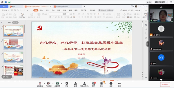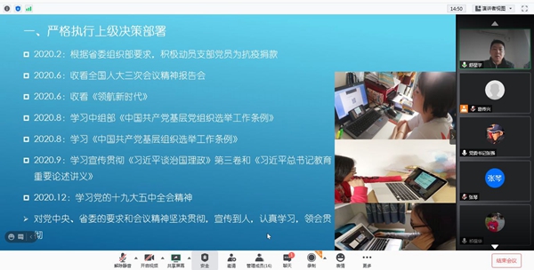 为落实太阳成集团122ccvip党委管党治党政治责任,推进全面从严治党向基层延伸,夯实基层党建工作,2021年1月15日下午13:30,太阳成集团122ccvip党委召开2020年度支部书记线上党建履责述职考评会议,全体支部书记参加述职,全体党委委员参加考评,党委副书记、副经理尹秀娟主持会议。
