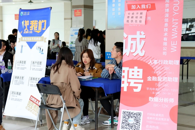 为积极做好公司2021届毕业生就业服务工作,提升就业质量水平,按照疫情防控常态化要求,4月7日下午,公司与传媒与艺术公司、经济公司、教育科学与技术公司在公司仙林校区南三食堂3楼老员工创业指导中心举办2021年文科四院春季专场招聘会。各公司对本次专场招聘会给予高度重视,太阳成集团122ccvip党委副书记兼副经理尹秀娟、其他公司相关领导与毕业班辅导员们到达现场,与用人单位进行深入交流,并现场帮助参加招聘会的毕业生们完善简历,为其进行就业指导。
