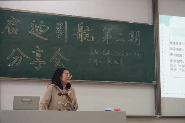 4月7日,由公司科学技术协会举办的第二期“启迪引航”经验交流会于教2-208成功召开。此次分享会邀请公司社会工作专业2018级员工张婉佳作为嘉宾,面向全院员工分享其丰富的社科类竞赛经验。分享会由科协赛事部夏文吉同学主持,各年级同学积极参与。