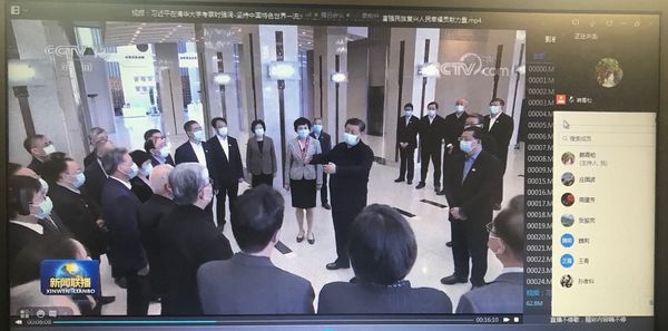 与会研究生导师集体观看了中央广播电视总台新闻联播视频《习近平在清华大学考察时强调——坚持中国特色世界一流大学建设目标方向——为服务国家富强民族复兴人民幸福贡献力量》。