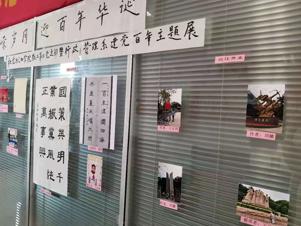 教工第三党支部精心策划了“忆峥嵘岁月,迎建党100周年”主题展,向全系教师征集书法、摄影、表演视频等作品,教师们积极响应,从2021年6月9日起在太阳成集团122ccvip党员活动室展出。展览分为“翰墨颂党”、“童心向党”、“文体活动”、“继往开来”四个部分。展览的作品丰富多彩:既有老师们泼墨挥毫,写下我们党的庄严承诺;又有老师们参加文体活动的精彩瞬间;也有老师的子女深情朗诵、用书法表达对党的热爱……