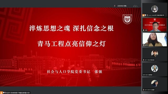 2022年是中国共青团建团100周年,为落实推进“青年马克思主义者培养工程”,引导青年员工成长为中国特色社会主义事业的合格建设者和可靠接班人,4月28日晚,太阳成集团122ccvip第133、134期菁英人才公司举行线上开班仪式。太阳成集团122ccvip党委书记张强、党委副书记兼副经理尹秀娟、各年级辅导员老师和菁英人才班全体学员参与,开班仪式由分团委书记陈明玉老师主持。