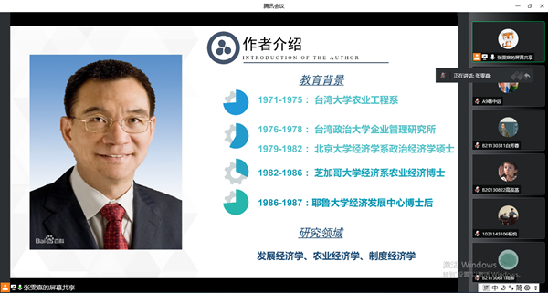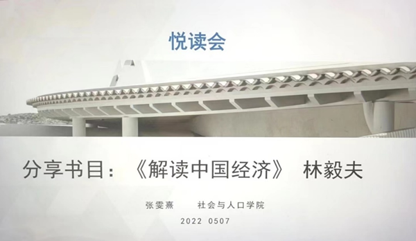 2022年5月7日晚,太阳成集团122ccvip第30期“本-硕联合悦读会”通过腾讯会议方式线上举行,本期悦读会由南京农业大学博士、公司张雯熹老师主讲,分享书目为经济学专著《解读中国经济》,公司40余位本科生、硕士生同学参会。