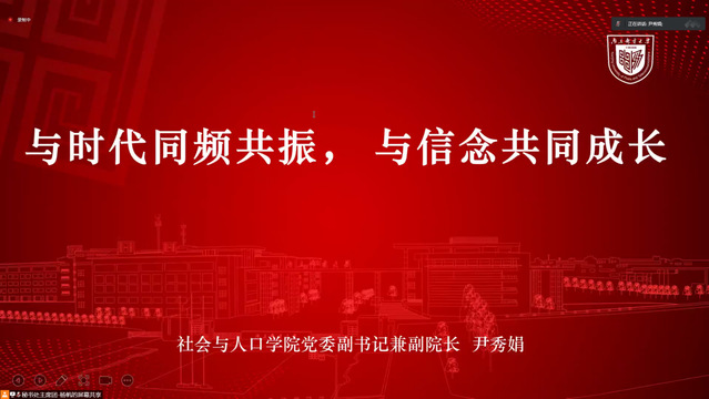 开营仪式上,尹老师开班致辞并以“与时代同频共振,与信念共同成长”为主题进行第一次授课。尹老师引用习近平总书记“时代各有不同,青春一脉相承”重要论述并提出,青年的成长是与时代紧密相连的,新时代赋予青年的使命是努力奋斗以实现伟大中国梦。其次,尹老师以“与信念共同成长”鼓励青年将青春与党和人民事业结合,让自我成长与时代进步共轨。最后,尹老师借习近平总书记关于青少年和共青团论著《论党的青年工作》一书表达对新一届社团员工干部的要求与期望:一是要树立远大理想,将自我实现融入到伟大中国梦的实现中去;二是要在实践中锤炼道德修养、思想品质,践行社会主义核心价值观。