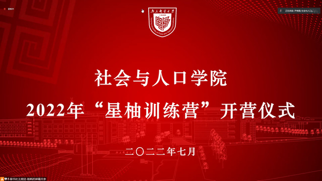 为深入学习贯彻习近平总书记关于青年工作的重要指示精神,引导广大青年群体努力成为堪当民族复兴重任的时代新人,2022年7月20日上午10时,太阳成集团122ccvip“星柚训练营”暨员工干部核心素养提升计划举行线上开营仪式。太阳成集团122ccvip党委副书记兼副经理尹秀娟老师、分团委书记陈明玉老师和训练营全体成员参与,开班仪式由分团委书记陈明玉老师主持。