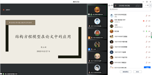 为进一步提高员工论文写作水平和学术综合能力,公司于2022年12月7日晚举办第九期“新文科生学术能力提升系列培训会”。本期培训,公司特邀陈立娟老师针对“结构方程模型在论文中的运用”这一主题与同学们进行交流分享,公司100余名本科生和研究生在线参会。