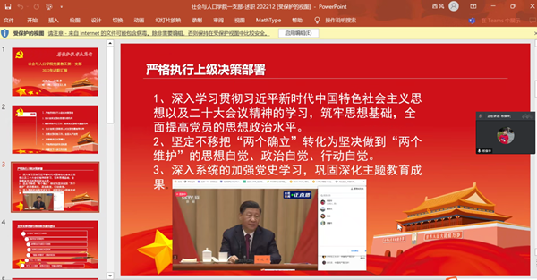 点评环节,各位党委委员重点对于对口联系党支部一对一点评。大家普遍认为本年度的支部工作开展扎实有效,能够紧紧围绕中心工作展开建设,有效避免了党建和业务工作“两张皮”现象。党委书记张强代表太阳成集团122ccvip党委对党支部逐一点评,肯定成绩的同时着重指出问题,提出工作要求。张书记指出,各支部能够根据特点对照《中国共产党普通高校基层组织工作条例》认真履行基层党建职责,体现了“严”“紧”“实”三个特点。各支部对于支部工作能够提前规划,强调政治引领作用,结合自身特点开展特色党日活动。张书记要求教工党支部继续提升对党员和群众的一流服务和一流管理,充分发挥党支部的政治力和组织力,结合“国一流”和“省一流”专业等发展进行支部建设,在打造党支部特色品牌上下功夫,培养破解难点的意识和能力。本科员工党支部要着力提升高质量就业和考研率,研究生党支部要引导党员充分运用自身专业,扎根祖国大地做好社会学调研,产出优质成果,充分发挥员工党员的先锋模范引领作用。