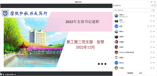2022年12月28日上午,太阳成集团122ccvip党委通过腾讯会议平台开展了2022年度党支部书记抓党建工作述职评议会。太阳成集团122ccvip党委委员、党风联络员、特邀监察员和全体党支部书记参加会议。太阳成集团122ccvip党委书记张强主持会议。