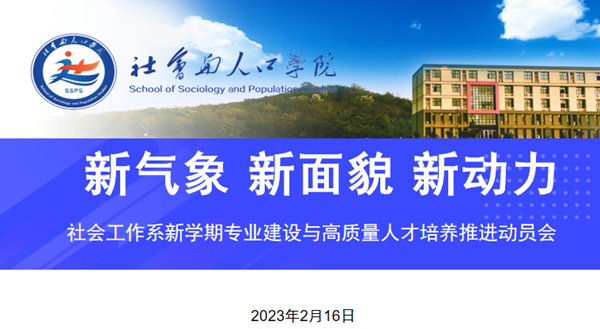 2023年2月16日,社会工作系召开新学期专业建设与高质量人才培养推进会。会议采用线上形式进行,除需要上课的老师,社会工作系其他老师全部参会。