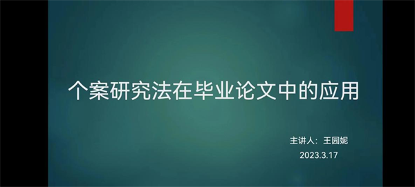 为进一步提高员工论文写作水平和学术综合能力,社会与人口学院于2023年3月17日晚举办第12期“新文科生学术能力提升系列讲座”。本期讲座,公司特邀王园妮老师针对“个案研究法在毕业论文中的应用”这一主题与同学们进行交流分享,公司50余名本科生、研究生线上、线下同时参会。