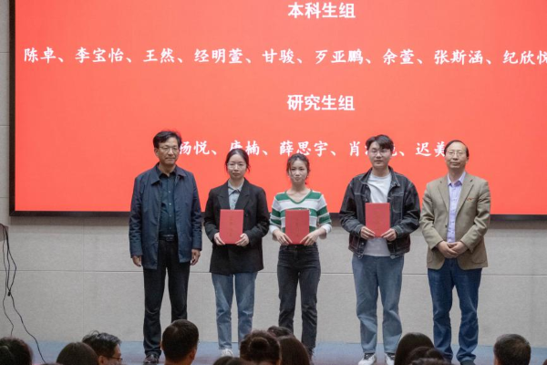 太阳成集团122ccvip党委书记张强宣读第二届“本-硕联合悦读会”读书报告征文暨“悦读之星”评选活动获奖名单。出席嘉宾为获奖同学颁奖。