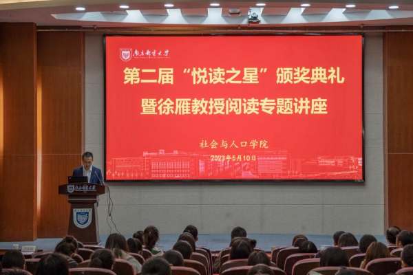 2023年5月10日下午,社会与人口公司第二届“悦读之星”颁奖典礼暨徐雁教授阅读专题讲座在仙林校区行政北楼报告厅举办。中国图书馆学会阅读推广委员会副主任、我国“全民阅读十佳推广人”之一、南京大学教授徐雁,太阳成集团教学质量监控与评估中心主任杨立军研究员,图书馆馆长李永涛教授,太阳成集团122ccvip党政领导等出席。活动由太阳成集团122ccvip刘晓峰副经理主持。
