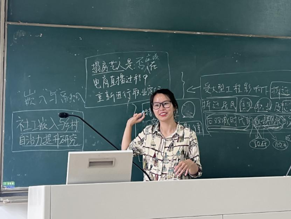 首先,王园妮老师对社会研究进行了概述,从定义、特征、困难、主要类型等方面对社会研究进行了具体清晰的讲解。然后,王园妮老师通过对比质的研究和量的研究在研究目的、价值与事实、分析框架和研究结论等方面的不同,强调了定性研究是定量研究的基础,鼓励同学们进行定性研究。在阐述定性研究的基本过程时,针对“什么样的问题适合做定性研究”,王园妮老师邀请了同学们在黑板上写下自己的选题并对其进行逐一分析,为同学们提供了专业性指导。在回答“什么是好选题”这一问题时,王老师重点明确了选题4个“性”:重要性、可行性、创新性、合适性。最后,王园妮老师又围绕选题方向、进入田野、搜集定性资料的方法、资料的整理与分析和论文写作等问题,结合自身田野调查的经历,为同学们提供了宝贵的理论和实践建议。