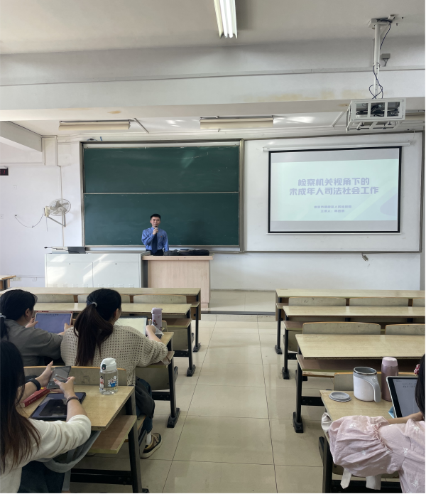 韩老师的报告深入浅出,全面深刻,精彩纷呈。韩老师首先介绍了司法社会工作的性质;然后结合案例,围绕司法社工的几个主题,如“合适成年人”“社会调查”“帮教服务”作了详细分享,最后回答了同学们的提问。