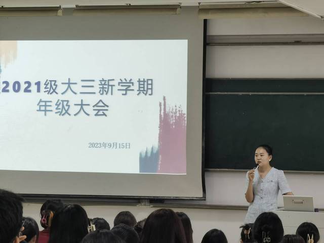 为帮助同学们提早规划本科毕业后的发展路径,2023年9月15日下午,在教2-102召开2021级学情分析年级大会。会议由2021级辅导员胥璐老师主持,全体2021级员工参会。