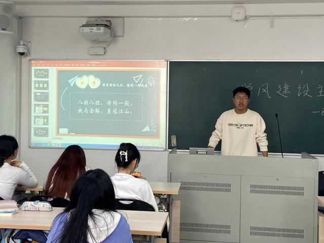 在主题班会中,各班班委结合班级实际情况对本班员工的绩点、四六级通过率、科研成果情况、获奖情况、社会实践情况进行分析归纳班级的特色文化,签署诚信考试承诺书,并总结各班在学风建设上已取得的优秀成果。同时,各班班级带头人从班级风貌、学习情况、建设建议等方面带领同学们深入了解学风建设的重要性和意义,提出班级同学需要改进的方面,集结全班同学的智慧定制独特的口号标语,展现班级特色,激励班级同学继续努力,在课堂上“争先进位”,在原有基础上为各班的学风建设进一步贡献自己的力量,更快促进先进班集体建设。此外,各班级主动开展了学习经验交流会。同学们积极分享,踊跃发言,从专业学习、社会实践、科技竞赛、生活作息等各个角度分享自己的方法和经验,同学们在互相交流中彼此学习,不断进步。