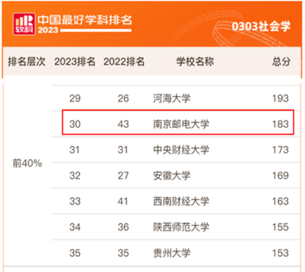 2023年11月8日,我国高等教育专业评价机构上海软科正式发布“2023软科中国最好学科排名”,公司社会学学科排名位列第30位,排名大幅提升,比2019年的49位进步了19位,目前在江苏高校中名列第3位。