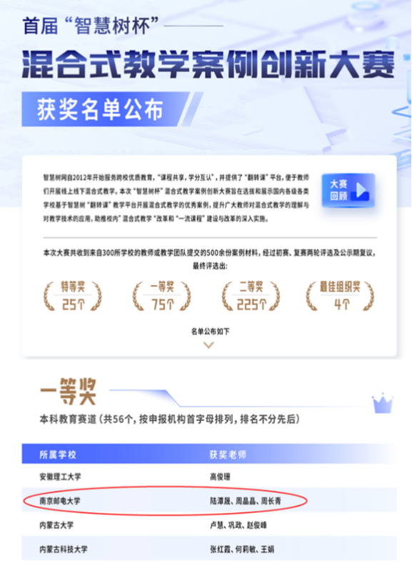 本次大赛由东西部高校课程共享联盟运营服务单位智慧树网主办,旨在选拔和展示国内各级各类公司开展混合式教学的优秀案例,提升广大教师对混合式教学的理解与对教学技术的应用,助推校内“混合式教学”和“一流课程”建设与改革的深入实施。大赛共收到来自300所公司教学团队提交的500余份案例材料,经过数轮评选,最终评选出优秀作品。