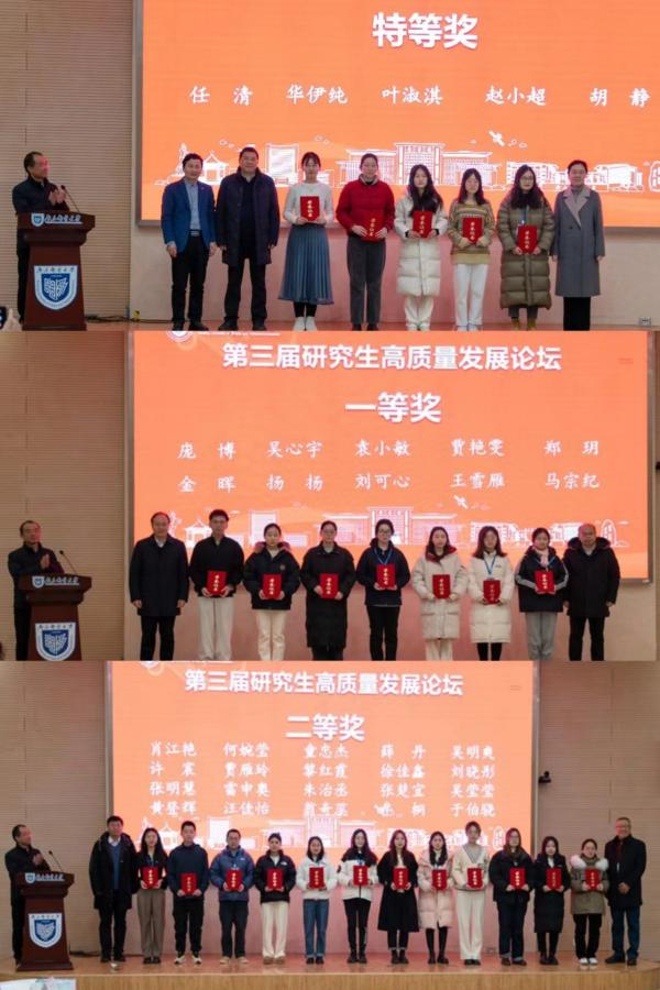 本次论坛共收到来自省内高校共60余篇论文投稿,评选出特等奖5篇、一等奖10篇、二等奖20篇。参会嘉宾为获奖的研究生同学颁发了荣誉证书。