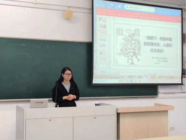王园妮老师先请同学们分享了自己近期的阅读经历,之后对《祖荫下:中国乡村的亲属·人格与社会流动》这本书及作者进行了简单的介绍,对于该书作者研究的人类学和社会心理学方向进行了讲解,为大家梳理了这本书的行文脉络。