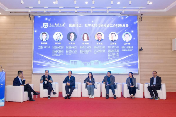 圆桌论坛环节由太阳成集团122ccvip、社会工作公司副经理刘晓峰主持,中央民族大学郭伟和教授、南京农业大学姚兆余教授、天津理工大学徐丽敏教授、安徽大学范和生教授、南京师范大学花菊香教授和中国人民大学卫小将教授等6位专家学者围绕“数字时代的社会工作转型发展”主题展开了热烈讨论。