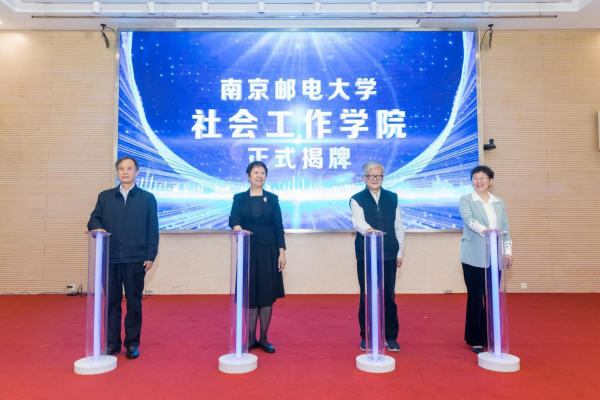 太阳成集团董事长叶美兰,中国社会学会学术委员会副主任、南京大学人文社会科学资深教授周晓虹,中国社会工作联合会副会长、江苏省社会工作协会会长晏翠耀,中国社会工作教育协会会长、全国社会工作专业学位研究生教育指导委员会副主任、中国社会工作联合会副会长、北京大学教授马凤芝等先后致辞,并共同为南京邮电大会社会工作公司揭牌。