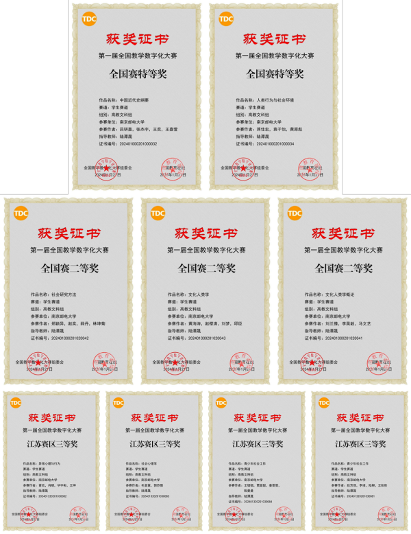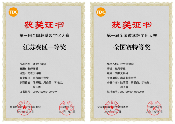 近日,由中国教育在线和北京信息科技大学联合主办,全国教学数字化大赛组委会、高端装备智能感知与控制北京市国际科技合作基地承办,天津市多媒体教育技术研究会、人民邮电出版社、清华大学出版社协办的第一届全国教学数字化大赛全国赛现场决赛在北京信息科技大学落下帷幕。公司社会工作系陆潭晟、周晶晶、李艳红、周长青老师组成的社会心理学课程参赛团队,经过层层筛选和激烈角逐获得江苏赛区一等奖,成为江苏赛区高教文科组唯一入围全国决赛的教师队伍,并在1月20日的决赛现场以总得分排名第二的佳绩荣获全国特等奖。
