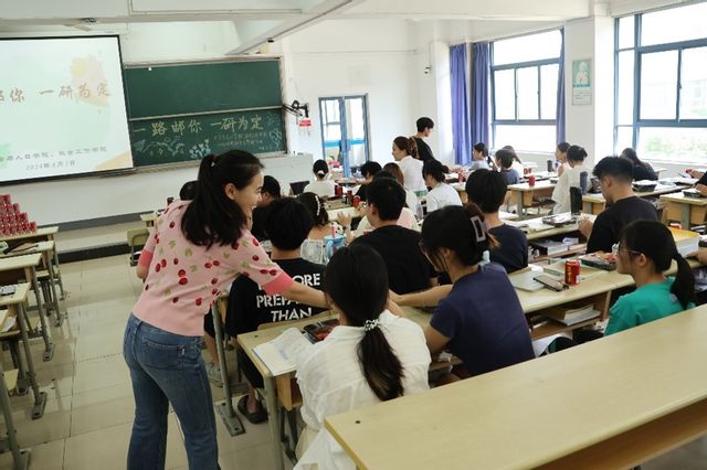 辅导员胥璐老师首先向在炎炎夏日坚持备考复习的同学表达鼓励,随后向同学们询问备考进度并提出有针对性的建议,最后祝福同学们能够一“研”为定,再创佳绩