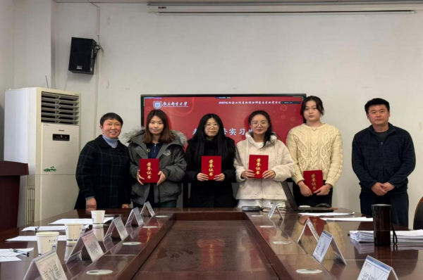 会议第三个环节是“优秀实习生”表彰仪式。经过全体现场评委老师严肃认真、客观审慎的评分,评选出了颜佳乐、薛丹、麻紫潇和肖伟宁等4位“优秀实习生”,王华教授和潘红娣老师给4位“优秀实习生”颁发了荣誉证书。