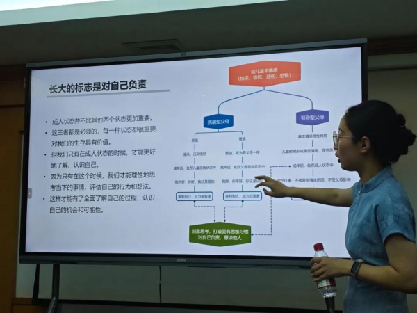 解老师介绍了书中蛤蟆先生的出处——《柳林风声》,并简单和大家回顾了书中内容,便于大家更好地理解《蛤蟆先生去看心理医生》的背景故事。在梳理了一遍书中内容之后,解老师对于书里涉及到的心理相关问题进行了拓展,向大家介绍了儿童自我状态、父母自我状态以及成人自我状态,并指出长大的标志是对自己负责,给同学们带来了很大的启发。